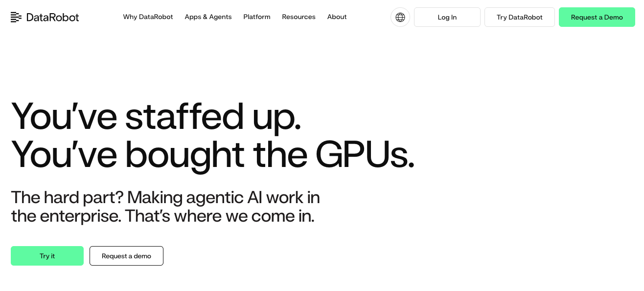 DataRobot serves Fortune 500 clients in banking, insurance, and manufacturing, making it one of the top AI companies for organizations seeking enterprise-grade artificial intelligence development.