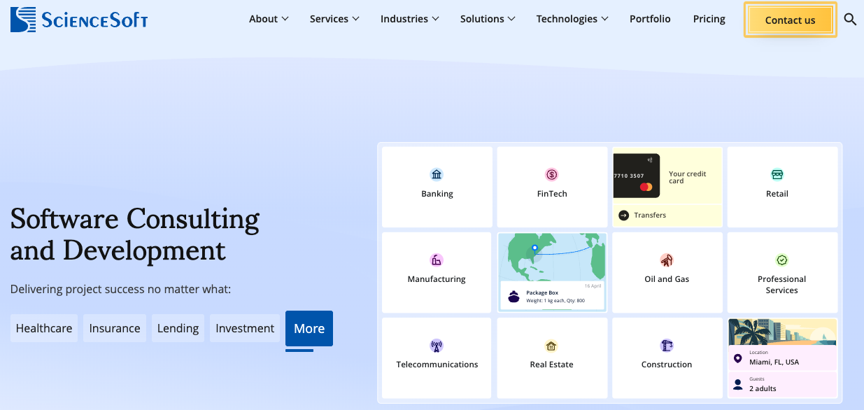 ScienceSoft has delivered projects for IBM, Walmart, and Nestlé, covering industries such as healthcare, retail, and fintech.